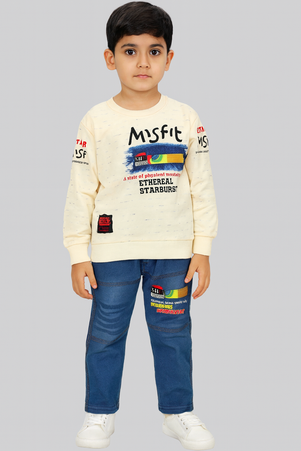 Boys’ Terry Fabric T-Shirt & Denim Trouser Set – Stylish & Comfortable Outfit for Kids
